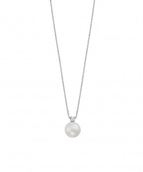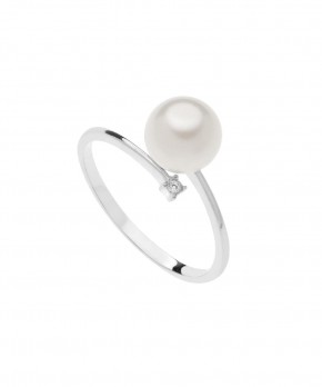 Anello Donna in oro bianco 750 con perla coltivata di acqua dolce Ø 7/7,5 mm. Diamante bianco P.Ct. 0.5, colore G, purezza SI e taglio brillante. Misura standard 13.