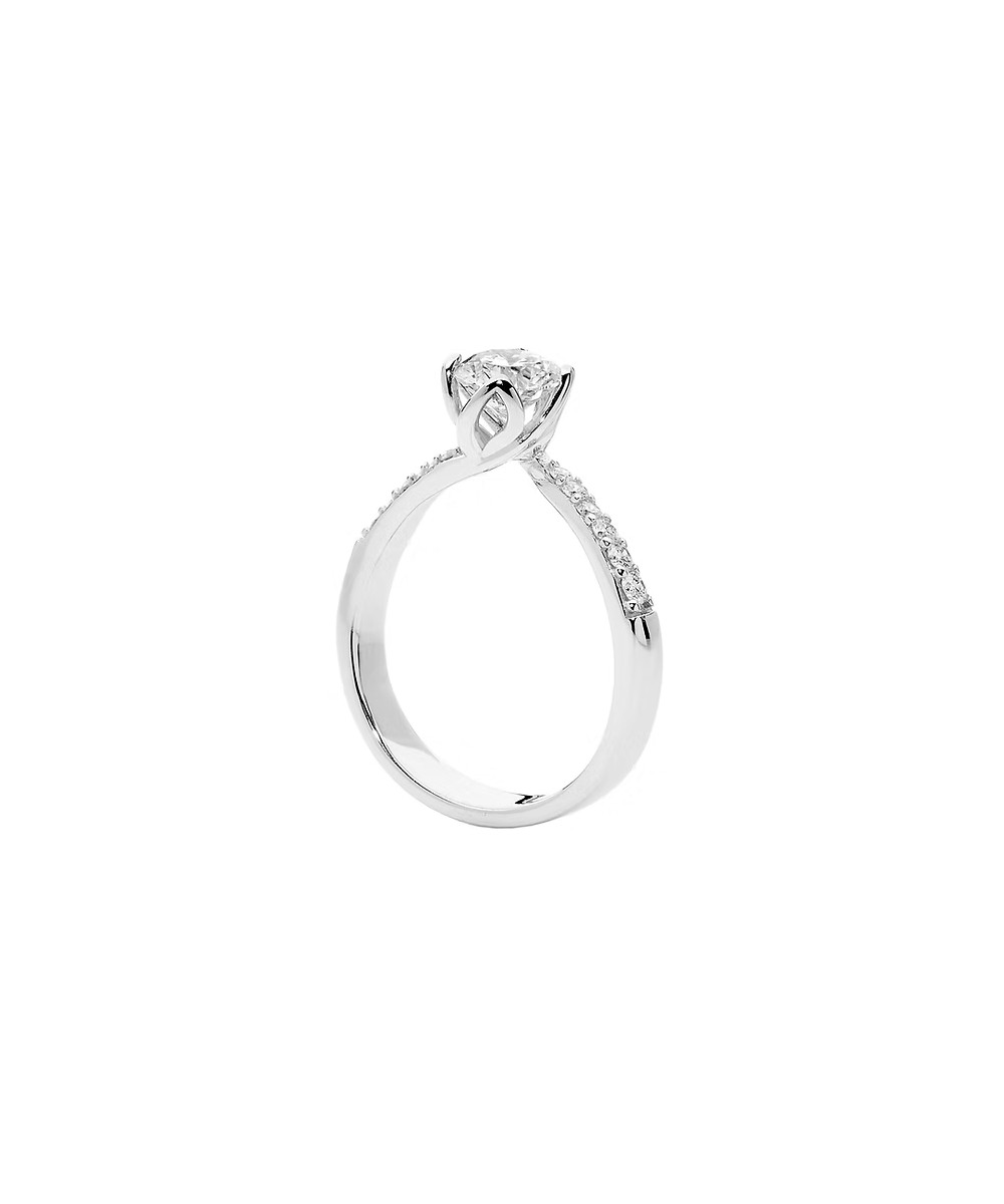 Anello Donna solitario in oro bianco 750 , diamante centrale da 20 P.Ct., diamanti laterali 11 P.Ct. colore G, purezza SI PRIME, taglio brillante. Misura 13