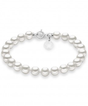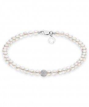 Bracciale Donna in oro bianco 750 con filo di perle coltivate di acqua dolce di Ø 6/6,5 mm e charm a forma di stella traforata in argento 925, lunghezza: 18 cm.
