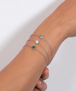 Bracciale in argento 925 impreziosito da uno zircone acquamarina centrale di 5 mm. Lunghezza regolabile da 16 a 18,5 cm