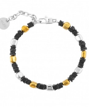 Bracciale Uomo elastico con pietre in agata nera alternate a pietre in agata grigia e charm in acciaio con incisione "My Family", lunghezza regolabile da 19 a 19.5 cm.