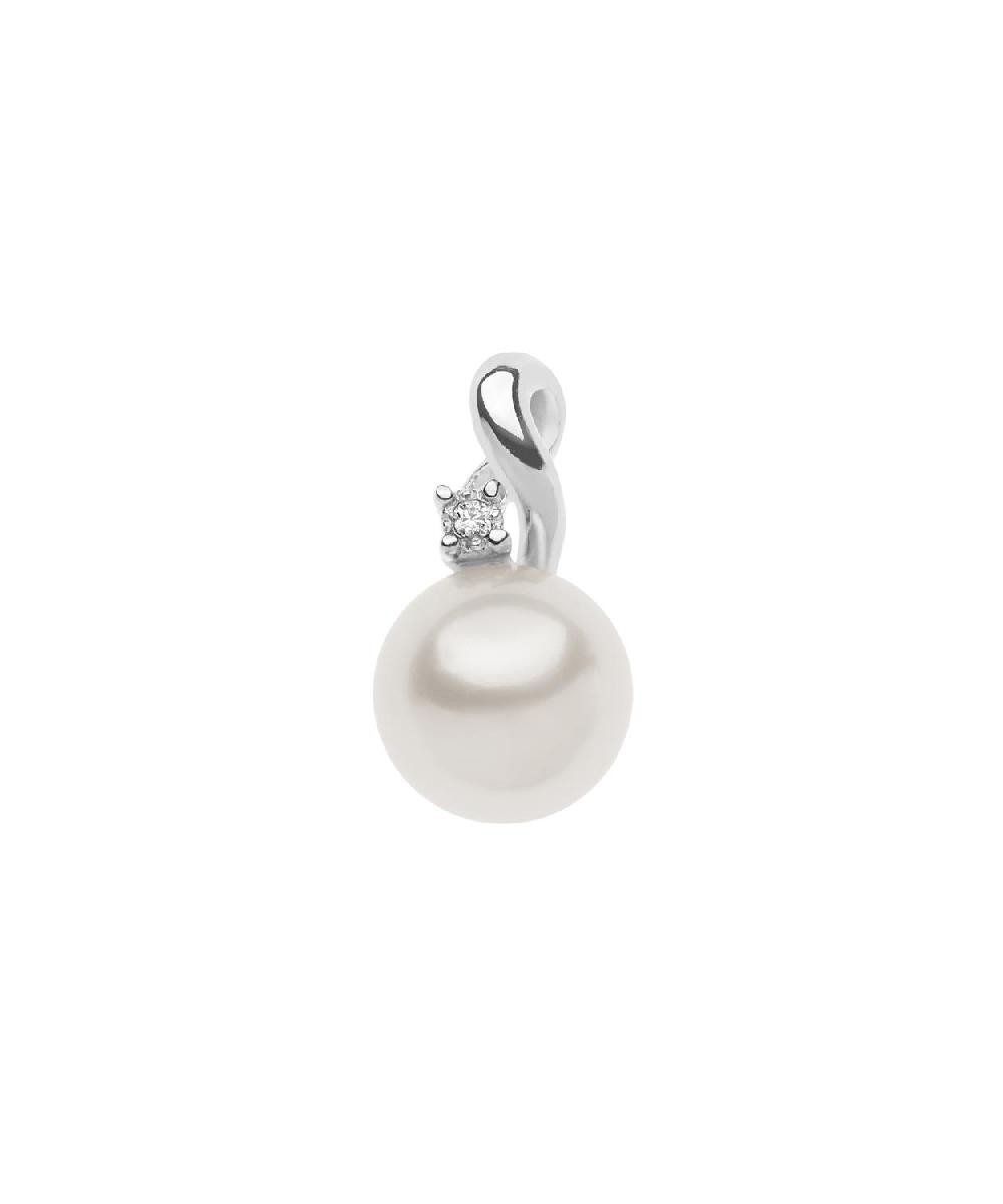 Ciondolo Donna in oro bianco 750 con perla coltivata di acqua dolce Ø 7/7,5 mm e diamante bianco P.Ct. 0.5, Colore G, Purezza SI e taglio brillante.