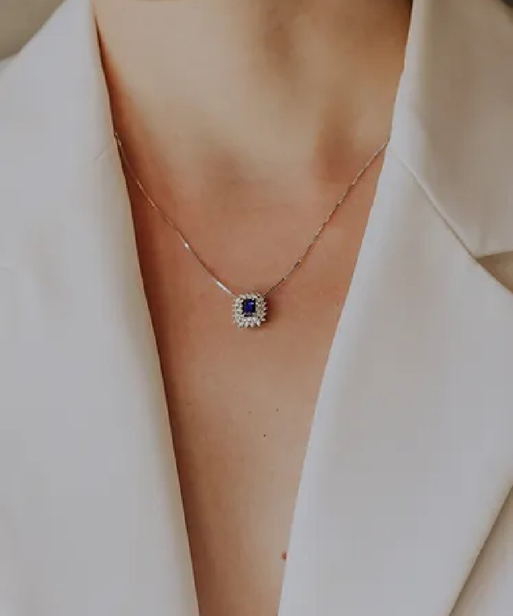 Collana REGINA GIROCOLLO ORO DIAMANTI ZAFFIRO BLU OTTAGONALE Comete Donna