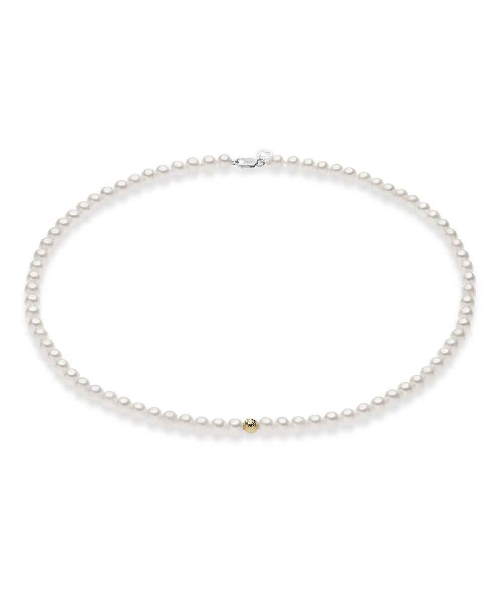 Collana Donna in oro bianco 750 con filo di perle coltivate di acqua dolce di Ø 5/5,5 mm. Sfera in oro con lavorazione diamantata, diametro: 5 mm. Lunghezza collana: 42 cm.