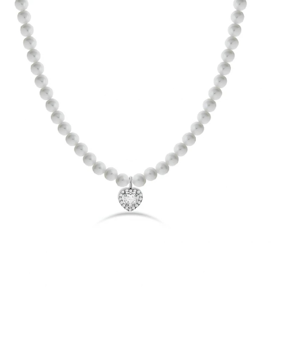 con perle bijoux e pendente a forma di cuore impreziosito da zirconi bianchi