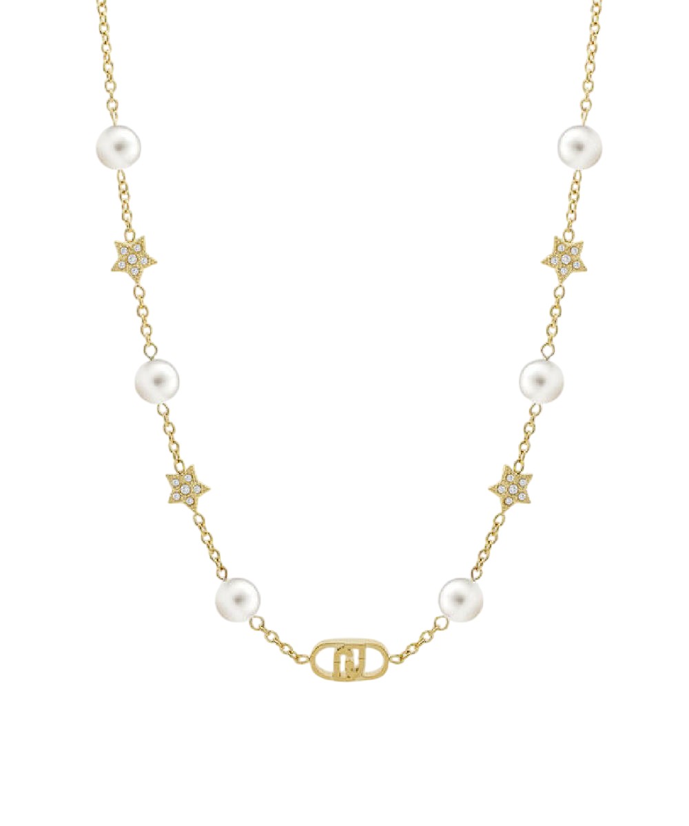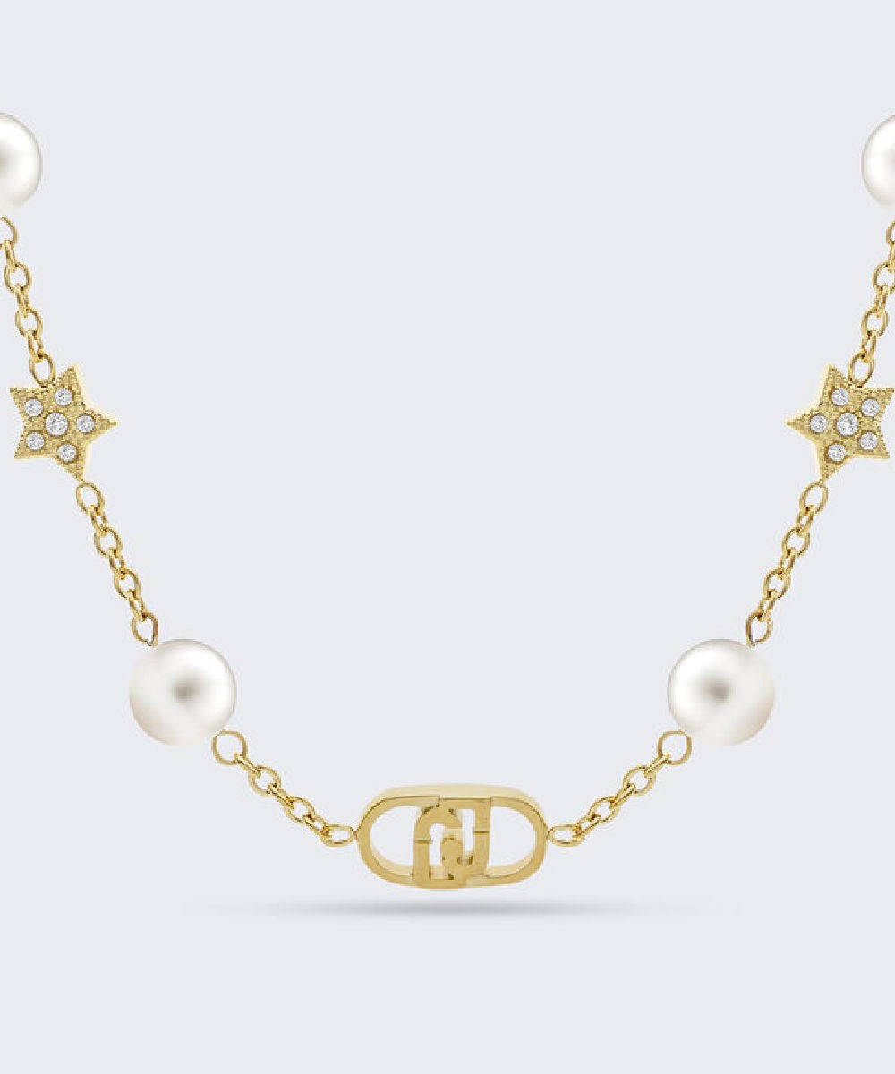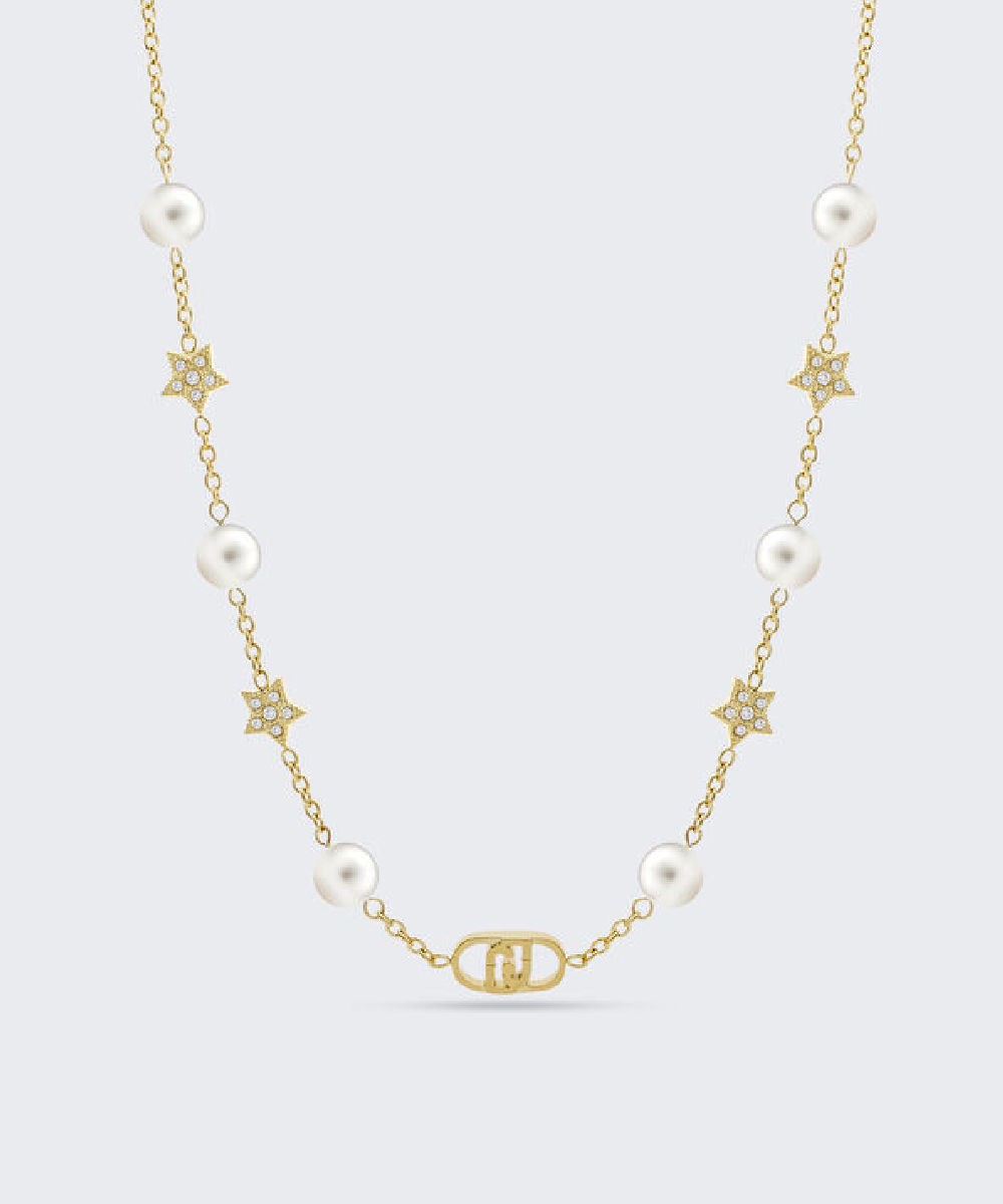 Collana Donna LIU JO LUXURY con perle bijoux, charm a forma di stelle impreziositi da zirconi bianchi e dettaglio monogram. Lunghezza collana 45 cm
