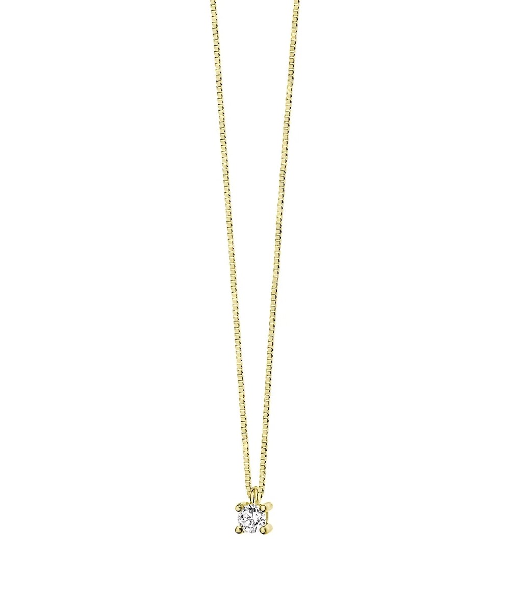 Collana Donna punto luce in oro giallo 750 e diamante bianco P.Ct. 5, colore G, purezza SI, taglio brillante. Catena veneziana.
