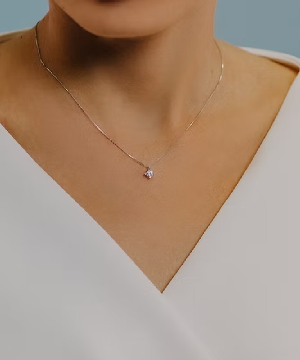 Collana Donna punto luce in oro bianco 750 e diamante bianco P.Ct. 5, colore G, purezza SI, taglio brillante. Catena veneziana.