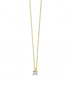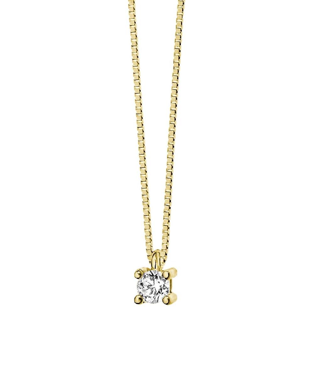 Collana Donna punto luce in oro giallo 750 e diamante bianco P.Ct. 10, colore G, purezza SI, taglio brillante. Catena veneziana.