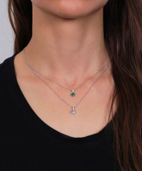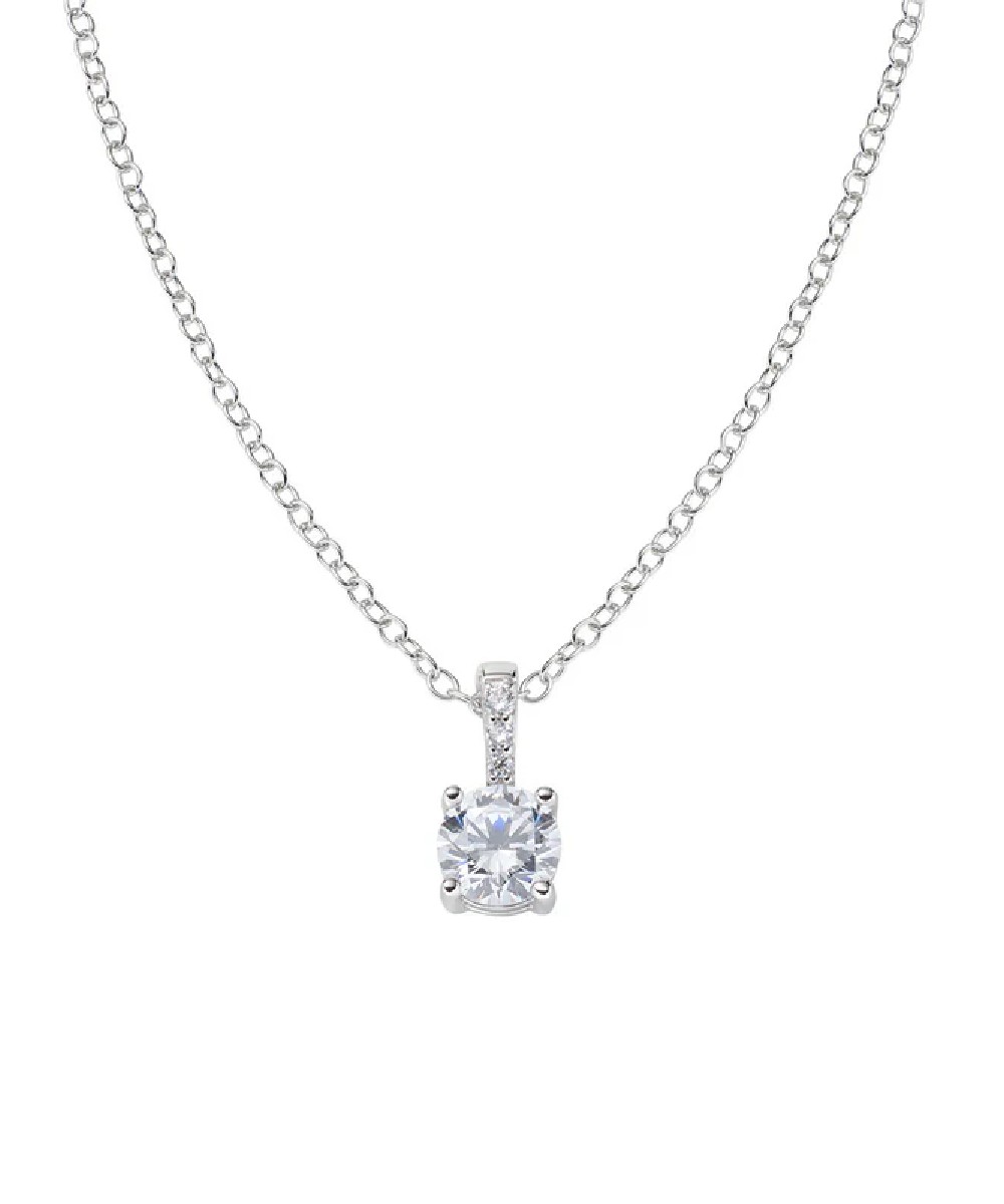 Collana Donna in argento 925 e pendente con punto luce in zircone bianco impreziosito da zirconi bianchi. Lunghezza regolabile da 40 a 45 cm.