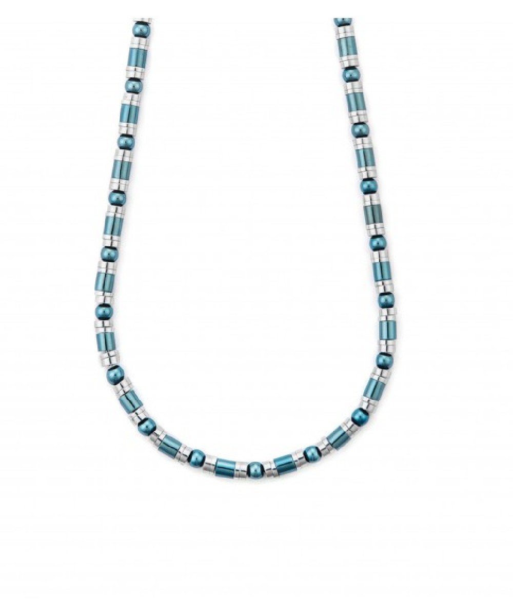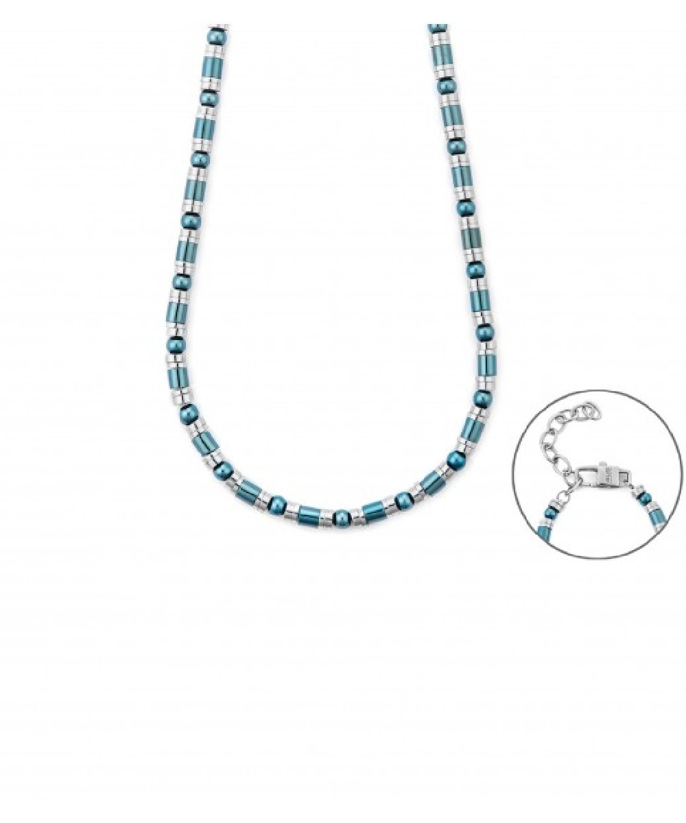 Collana Uomo in acciaio 316L con finitura rodiata e blu. Lunghezza regolabile da 60 a 65 cm.