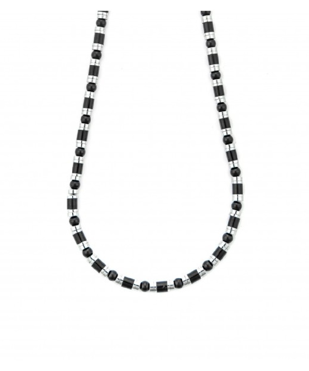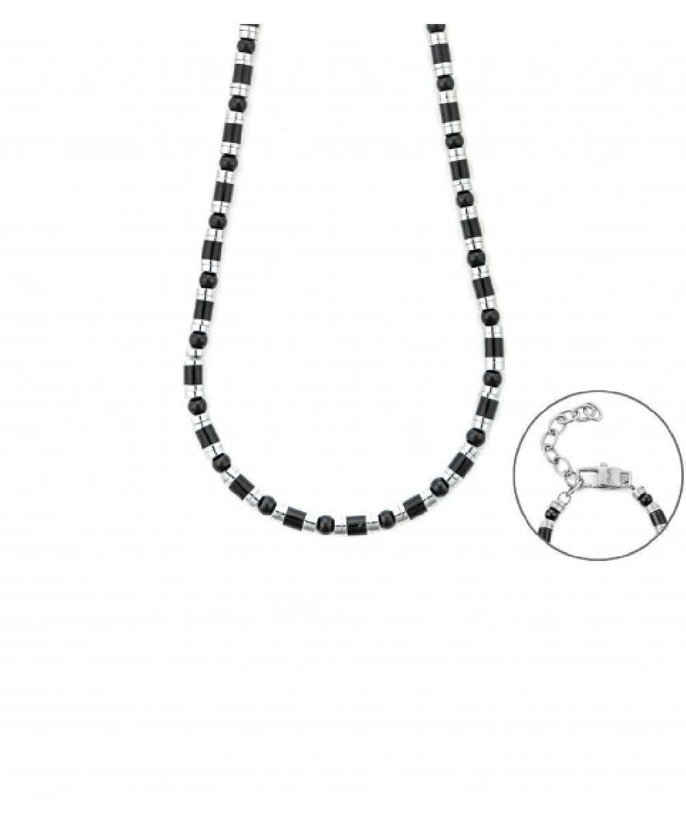 Collana Uomo in acciaio 316L con finitura rodiata e nera. Lunghezza regolabile da 60 a 65 cm.