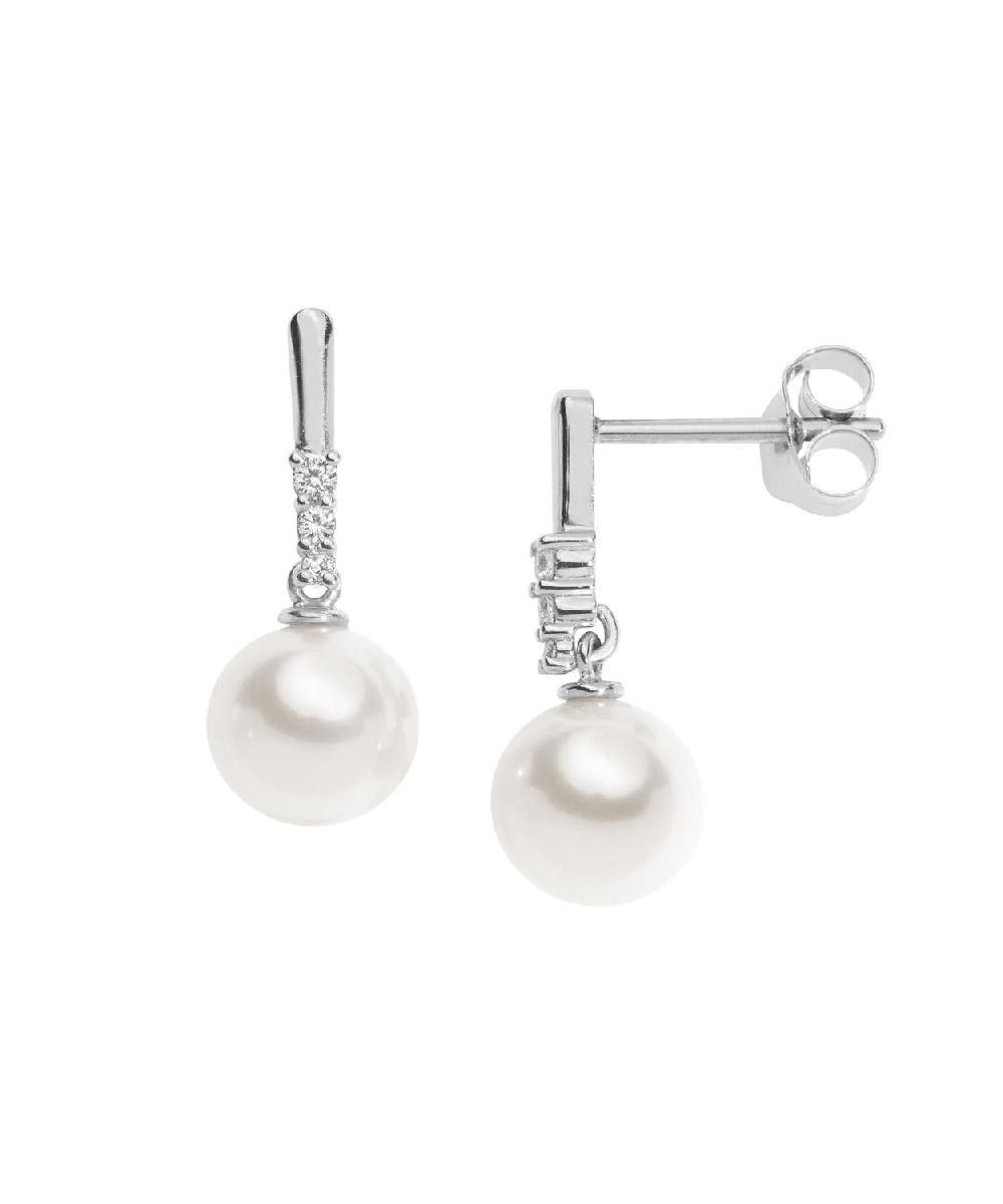 Orecchini Donna in oro bianco 750 con perle coltivate di acqua dolce Ø 7/7,5 mm. Diamanti bianchi P.Ct. 6, colore G, purezza SI e taglio brillante.