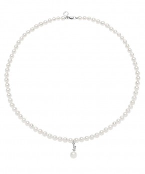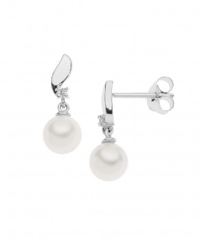 Orecchini Donna in oro bianco 750 con perle coltivate di acqua dolce Ø 6,5/7 mm. Diamanti bianchi P.Ct. 2, colore G, purezza SI e taglio brillante.