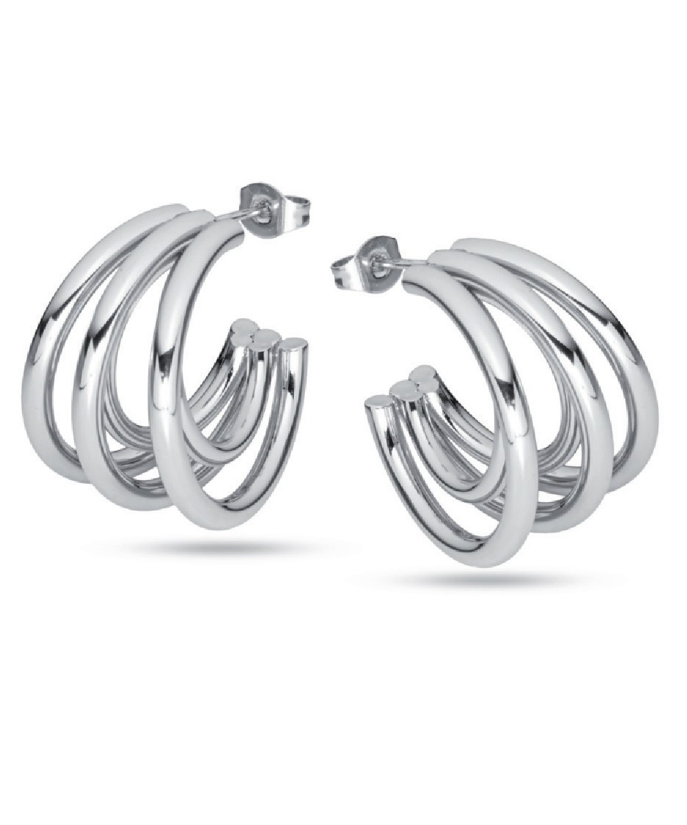 Orecchini Donna LIU JO LUXURY in acciaio con 5 cerchi alternati . Lunghezza 2,6 cm. Chiusura a farfalla.
