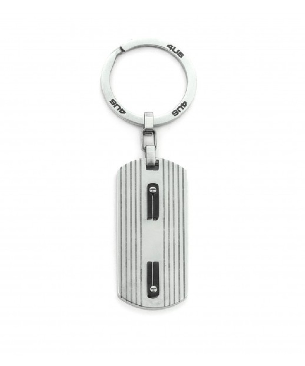 Portachiavi Uomo a forma rettangolare in acciaio anallergico con finitura rigata e dettagli neri.