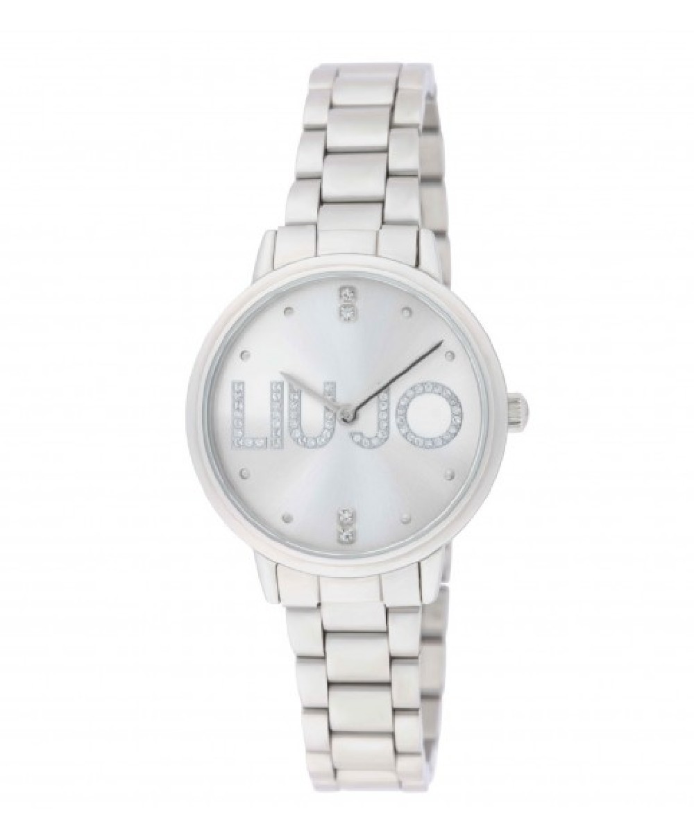 Orologio Donna solo tempo con cinturino in acciaio 316L colore silver. Cassa rotonda in acciaio 316L colore silver, diametro: 32 mm. Quadrante silver impreziosito da cristalli bianchi con logo, sfere (lancette) colore silver. Resistenza all'acqua: 3 ATM. Movimento: al quarzo Seiko VJ20. Bracciale in acciaio abbinato.
