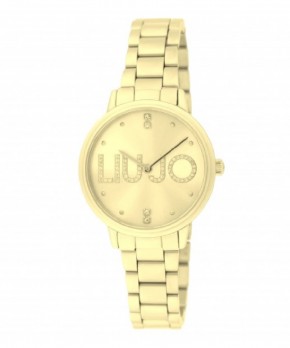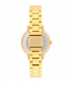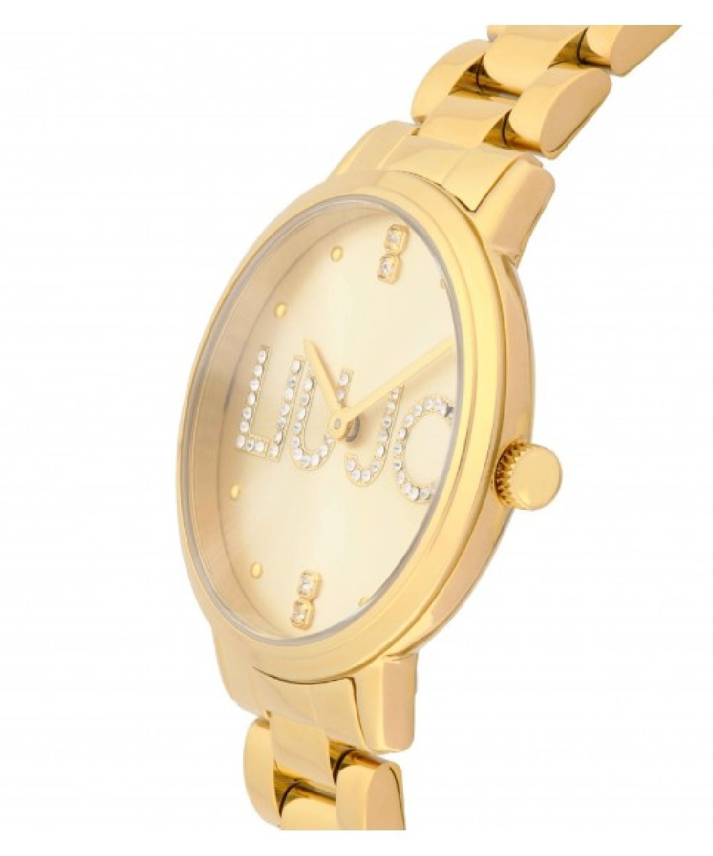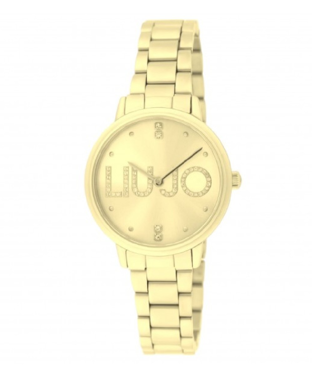 Orologio Donna solo tempo con cinturino in acciaio 316L colore gold. Cassa rotonda in acciaio 316L colore gold, diametro: 32 mm. Quadrante gold impreziosito da cristalli bianchi con logo, sfere (lancette) colore gold. Resistenza all'acqua: 3 ATM. Movimento: al quarzo Seiko VJ20. Bracciale in acciaio abbinato.