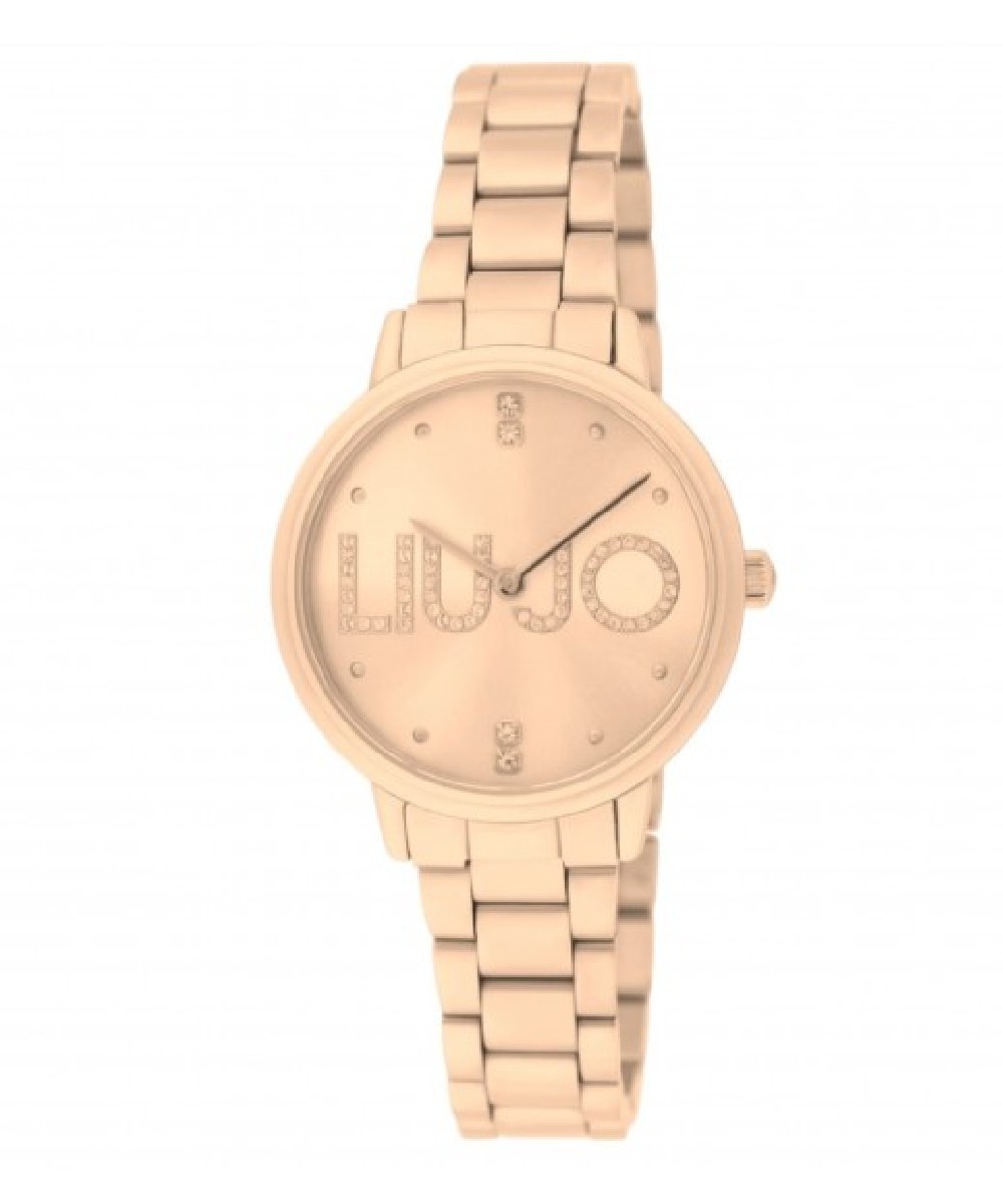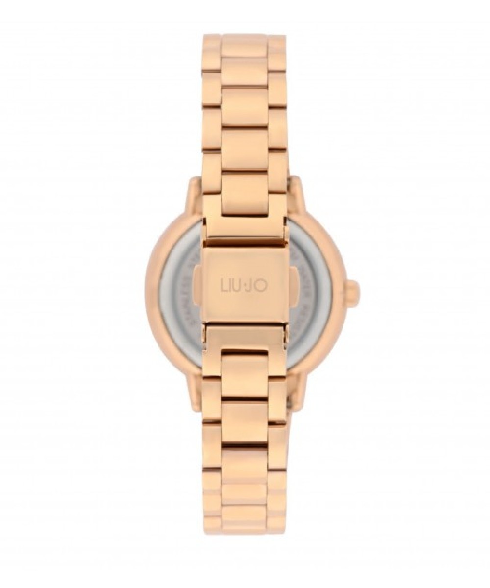 Orologio Donna solo tempo con cinturino in acciaio 316L colore rosegold. Cassa rotonda in acciaio 316L colore rosegold , diametro: 32 mm. Quadrante rosegold impreziosito da cristalli bianchi con logo, sfere (lancette) colore rosegold. Resistenza all'acqua: 3 ATM. Movimento: al quarzo Seiko VJ20. Bracciale in acciaio abbinato.